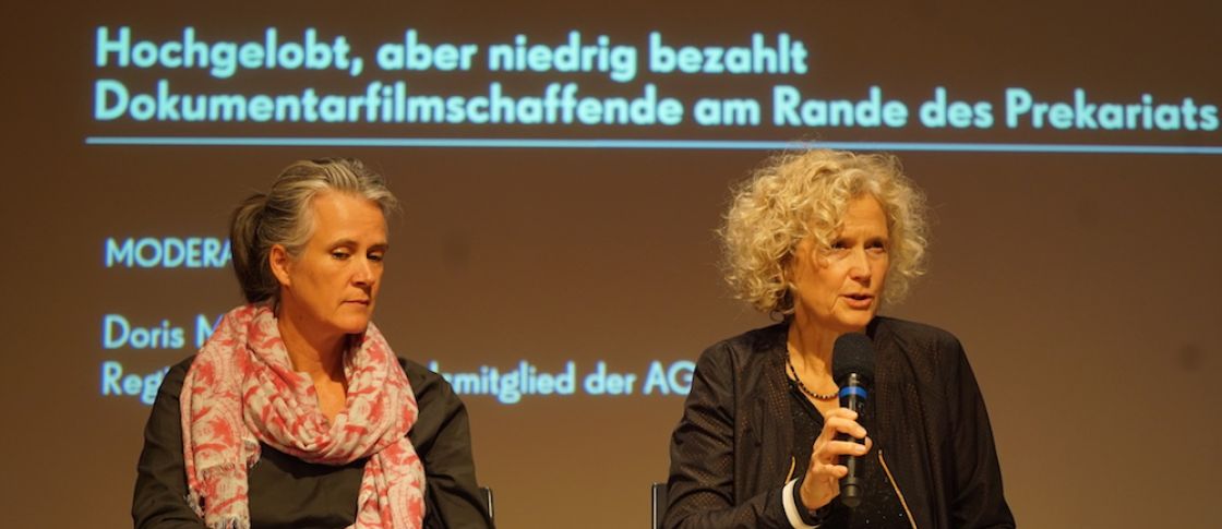 Die Regisseurin Susane Gluth (links) skizzierte die Folgen der aktuellen Vergütungssituation aus Sicht als Filmemacherin, und neben ihr, Doris Metz, die das Panel moderierte.